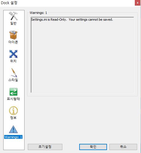 - RocketDock 옵션의 일반 - 설정을 .INI 파일에 저장을 할 수 없거나 Settings.ini가 생성되지 않음?